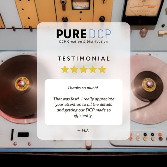 Creating a DCP should not be confusing or prohibitively expensive. Pure DCP exists to simplify the process, allowing filmmakers to focus on storytelling while we handle the technical side of theatrical delivery.